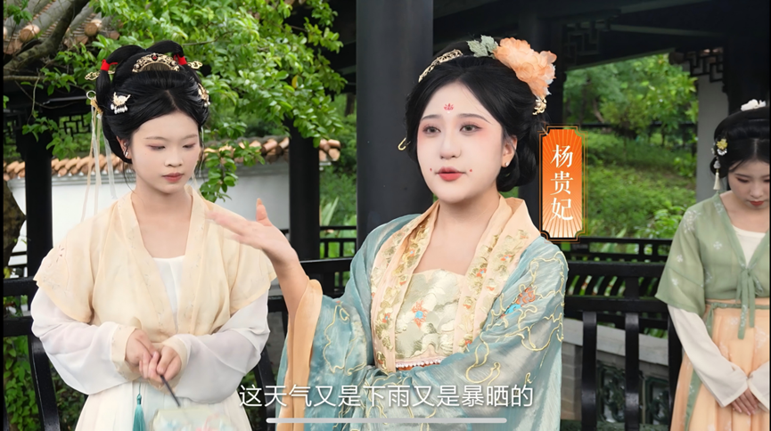 参赛选手们以汉服情景短剧再现“一荔难求”场面以凸显现代品尝荔枝酥的便捷